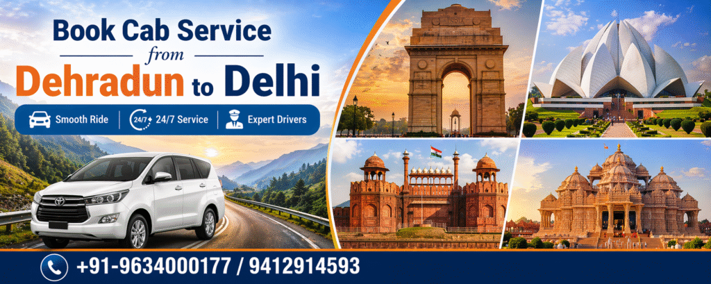 Yes, we offer reliable outstation taxi services from Dehradun to popular destinations like Mussoorie, Rishikesh, Haridwar, Nainital, Delhi, Agra and more.
